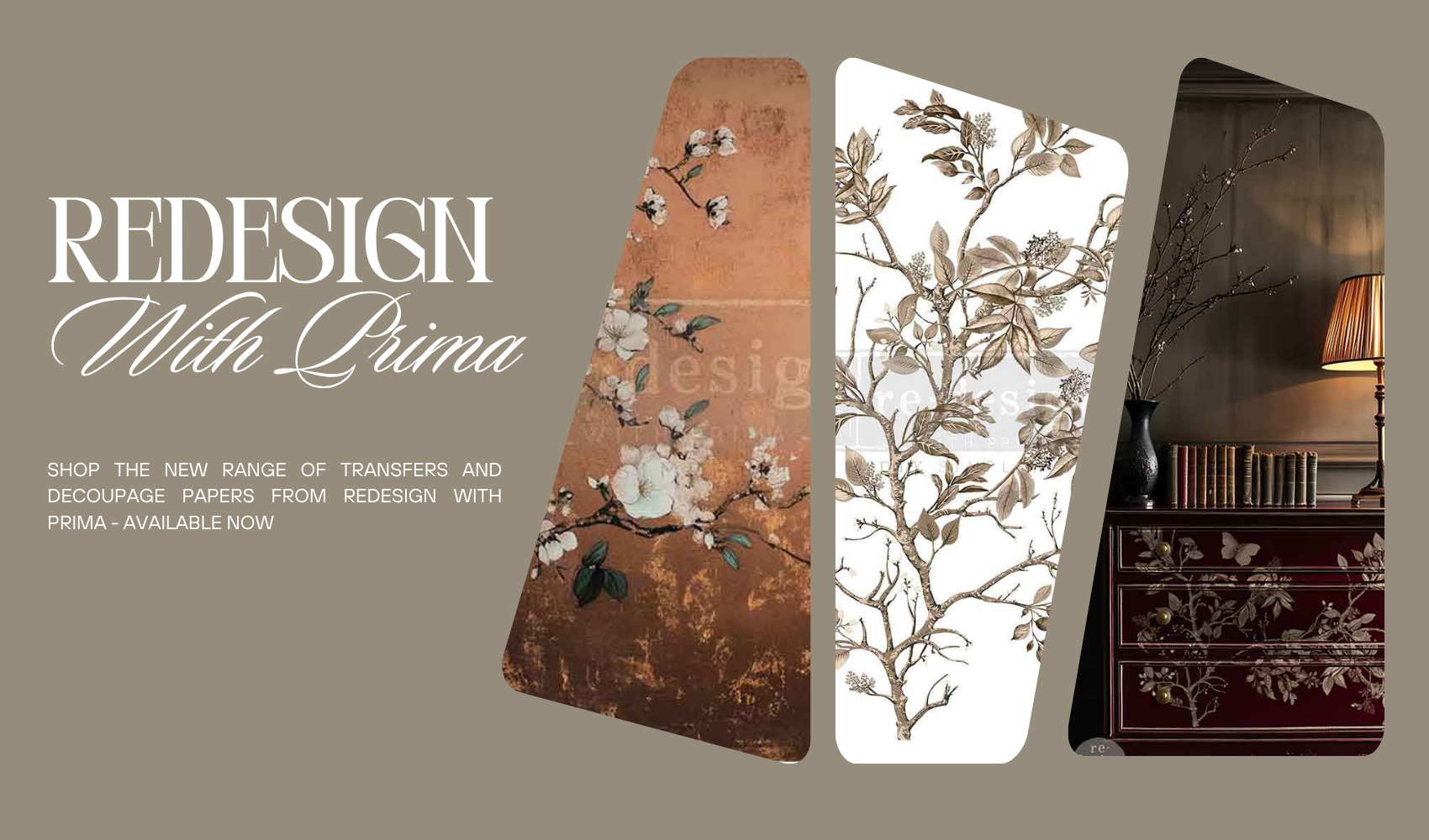 Let us help you to reimagine your home decor and furniture, from our vast range of paints, wood trims, metallic foils, gilding waxes, accenting products, decoupage, furniture transfers, varnishes and waxes.
