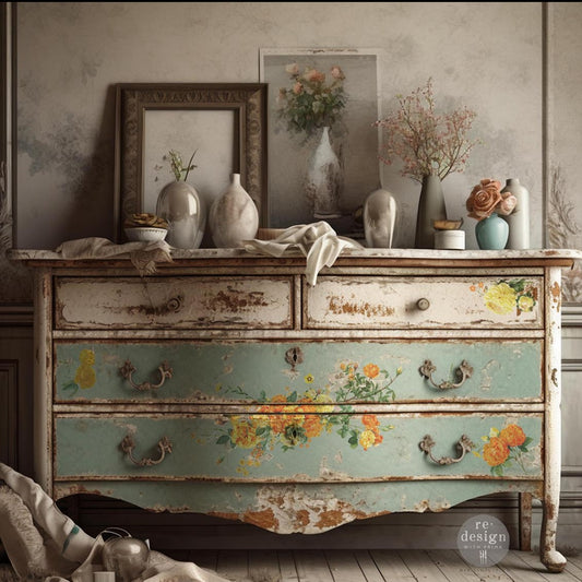 Flowers Horizontal - Mint by Michelle Decoupage Paper - A3 and A1 sizes