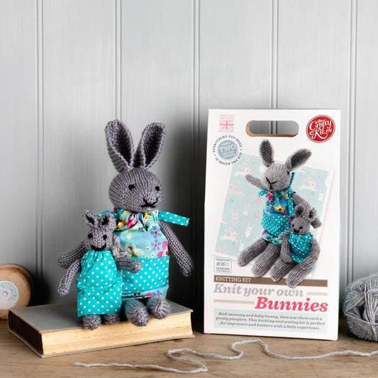 Knit Your Own Bunnies Kit - Finished Size Approx 35cm mum, 20cm baby