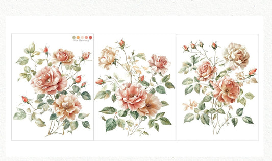The Rosy Nest - 3 sheets - 21.5cm x 27.9cm each - Redesign with Prima Decor Transfer Decal