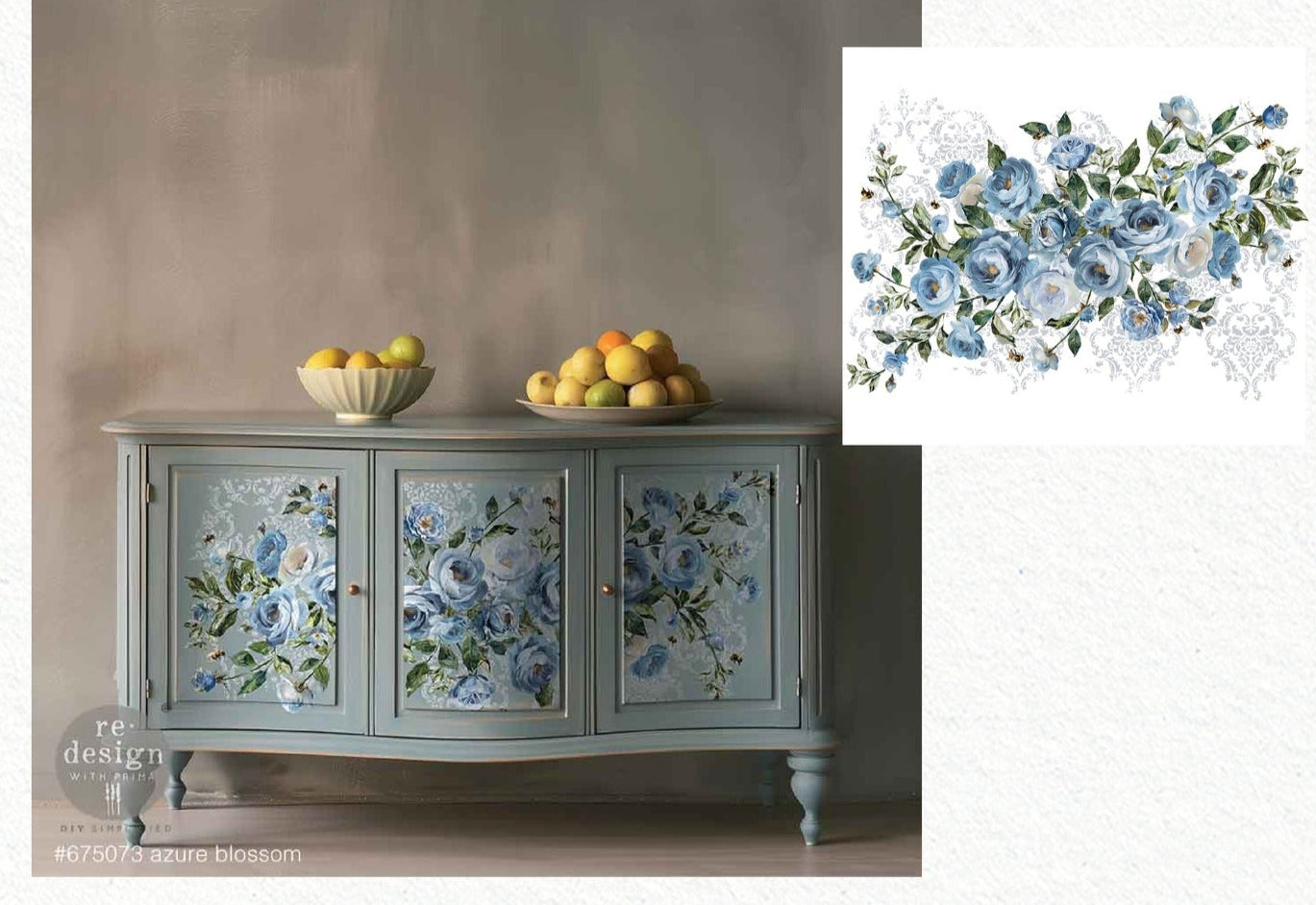 Dreamy, elegant, and oh-so-stunning—Azure Blossom is like a whisper of vintage lace and soft blue roses straight out of a fairytale. Whether you're turning a plain nightstand into a showstopper or giving an old mirror a Cinderella moment, this Décor Transfer® by Redesign with Prima® wraps your projects in timeless beauty.