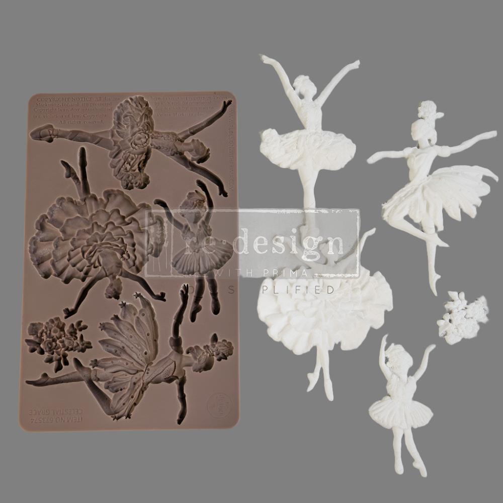 For ballet lovers and those who cherish the elegance of dance, ""Celestial Grace"" is a must-have. This mould set features graceful ballerinas captured in mid-pirouette, with flowing tutus and intricate details. The delicate floral accents complement the dancers, creating a scene of celestial beauty. Perfect for adding a touch of ballet-inspired magic to your wall art, furniture, and Christmas candies, these moulds will make your holiday decor truly enchanting and sophisticated.