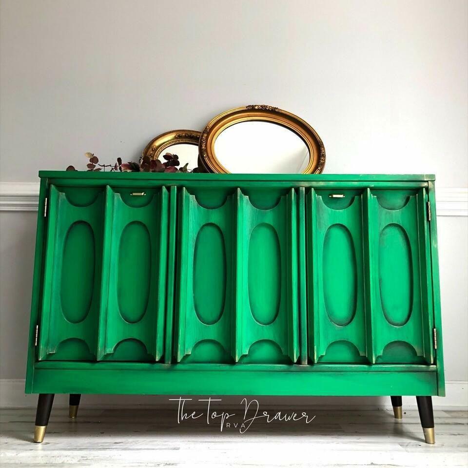 Let your imagination run wild as you envision Tree Frog Green adorning your kitchen island, dresser, buffet, and beyond. Each stroke of this best paint for furniture brings a burst of energy and personality, turning ordinary pieces into extraordinary masterpieces. For an added touch of luxury, consider pairing Tree Frog Green with a hint of Gold Digger Moonshine Metallic, creating a stunning combination that exudes sophistication and style.